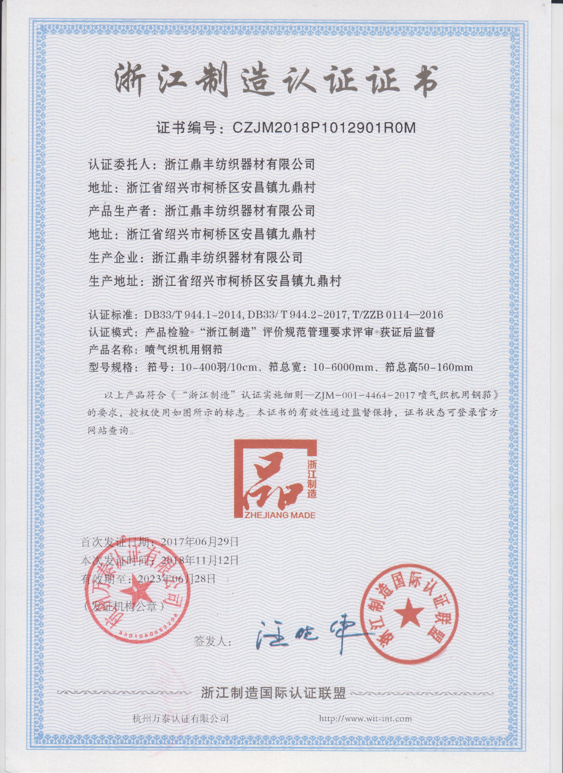 公司現(xiàn)有固定資產(chǎn)6000余萬元,員工300余人,現(xiàn)具有年產(chǎn)噴氣異型筘12萬米,劍桿筘32萬米,噴水筘5萬米,綜框20萬片,鋼片綜2億片,停經(jīng)片1.5億片, 織軸1.2萬套的生產(chǎn)能力。公司“越泉”商標被評為“中國馳名商標”。公司通過ISO9001 :2015國際質(zhì)量體系認證,ISO14001:2015國際環(huán)境管理體系認證,ISO45001:2018國際職業(yè)健康安全管理體系認證,噴氣織機用鋼筘和織機用鋁合金綜框獲得“浙江制造”品牌認證,公司擁有自營進出口權,產(chǎn)品暢銷全國并遠銷印度、巴基斯坦、土耳其、埃及、哥倫比亞、意大利等國家和地區(qū)。